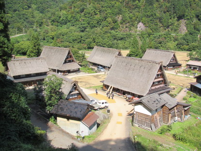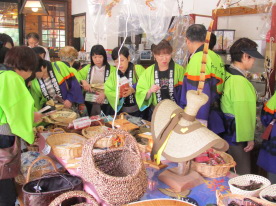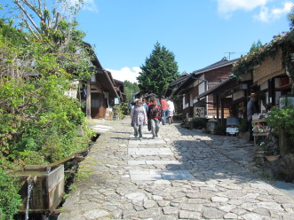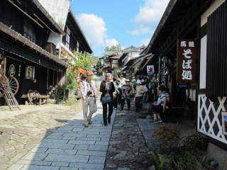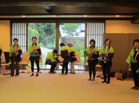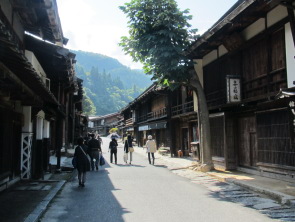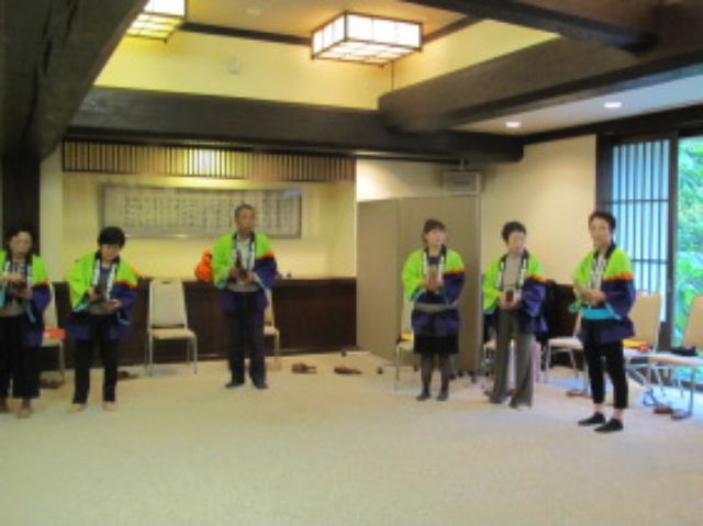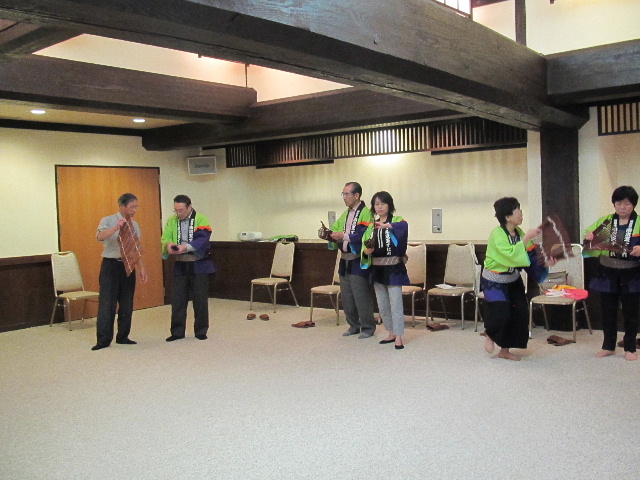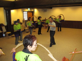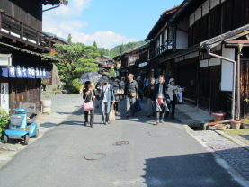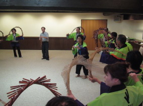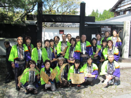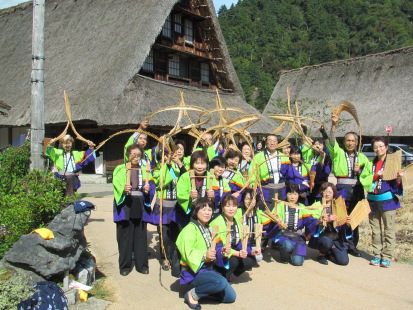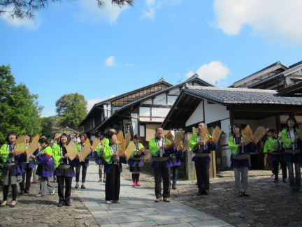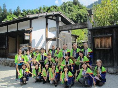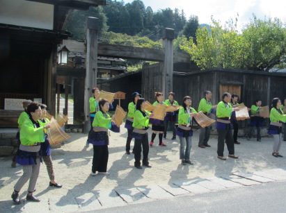 玉すだれの元「編み竹踊り」の研修に五箇山村に、古い町並みの妻籠宿、馬籠宿での路上パホーマンスは観光客の拍手喝采