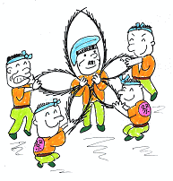 安芸奇術同好会と古典芸能南京玉すだれ広島保存会は、ひろしま国際センターを表敬訪問し、海外から来ておられる皆さんに、日本の伝統芸能に触れていただき大好評でした。サプライズで、みなさんに鬼の面を配り、「鬼は外、福は内」と豆まきをしました。